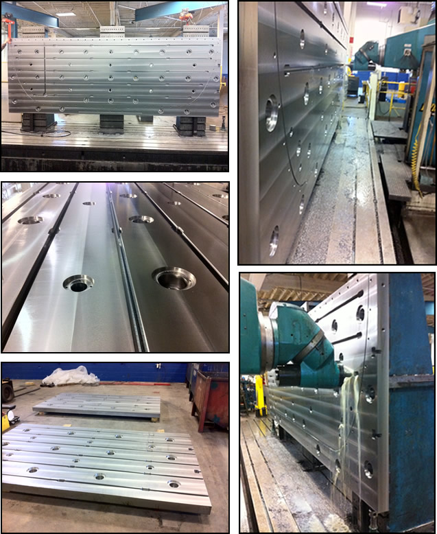 Maximum dimensions for a single plate are 24' x 9' (7.3m x 2.7m). Plate thickness is restricted by material availability and overall weight. Typical width are 4" to 6". Plate thickness is typically dictated by the T-slot size and overall length of the plate. Larger plate areas will be constructed using multiple single plates