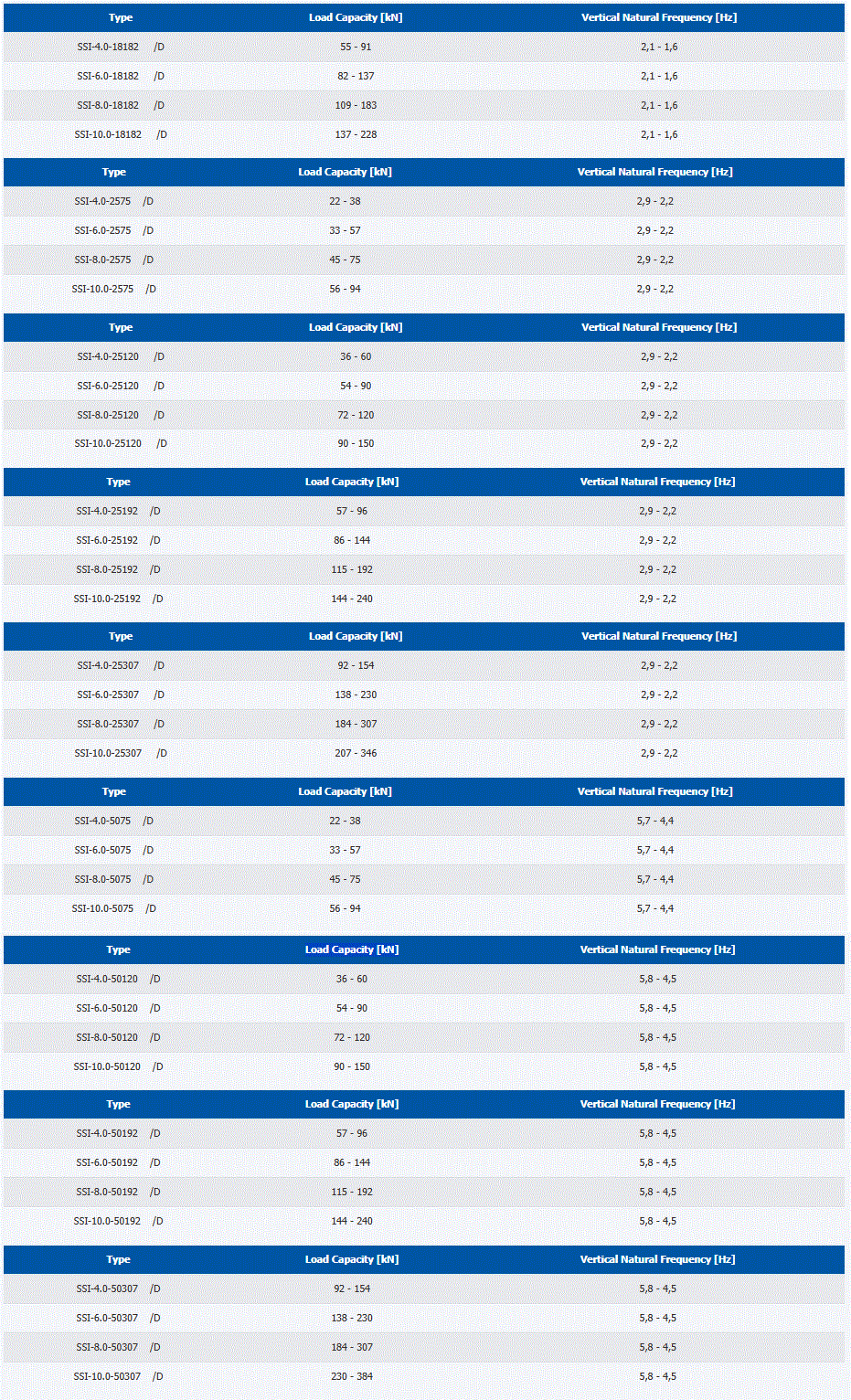 The CFM Steel Spring Isolator type SSI is our latest innovation. CFM Schiller manufactures the type SSI in three different natural frequency ranges: 1.8 Hz, 2.5 Hz, and 5 Hz. Each isolator model can be offered with or without viscous damper; the installation height remains the same. The load capacity per isolator ranges from 22 kN to 384 kN.